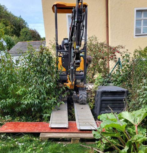 Zur Entfernung von Rasensode, Wurzelstöcken, Vorbereitung für Fundamente, Hauswandfreilegung, Kabelverlegung usw.
