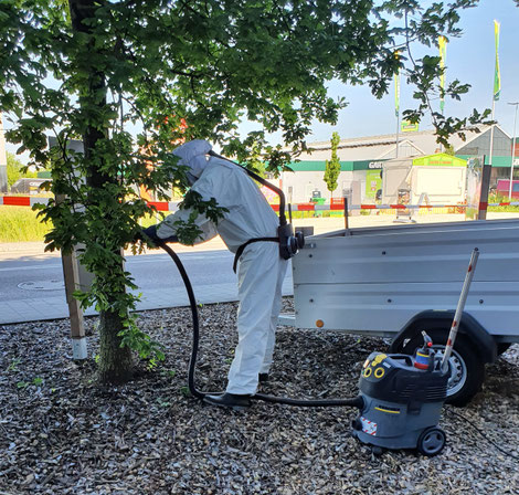 Dem Stadium der Raupen angepasst saugen oder sammeln wir die Nester ab.